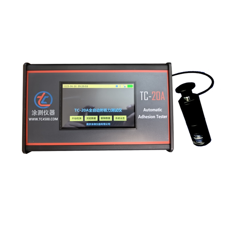 全自动附着力测试仪是我公司最新开发出来的一款 智能附着力测试仪器,它通过液压对特定面积的涂层进行拉脱测试,拉脱 全过程均由仪器自动完成,拉脱速度稳定可控,避免了人手加压产生的速 度不稳定而带来的误差;拉脱力可通过数字显示器精确显示,并有三种不 同的单位MPa、psi及kN选择;仪器可设定增压上限,能对样品施加精准 的压强;在达到设定的压强后,可设定保压时间,从而评价样品在一定压 力下的耐久性能。在国内尚属,具有操作简单,数据精确,维护成本 及配套耗材价格低等特点,被广泛用于一些混凝土基层涂层、防腐涂层或 者多道涂层体系中不同涂层之间的附着力测试。